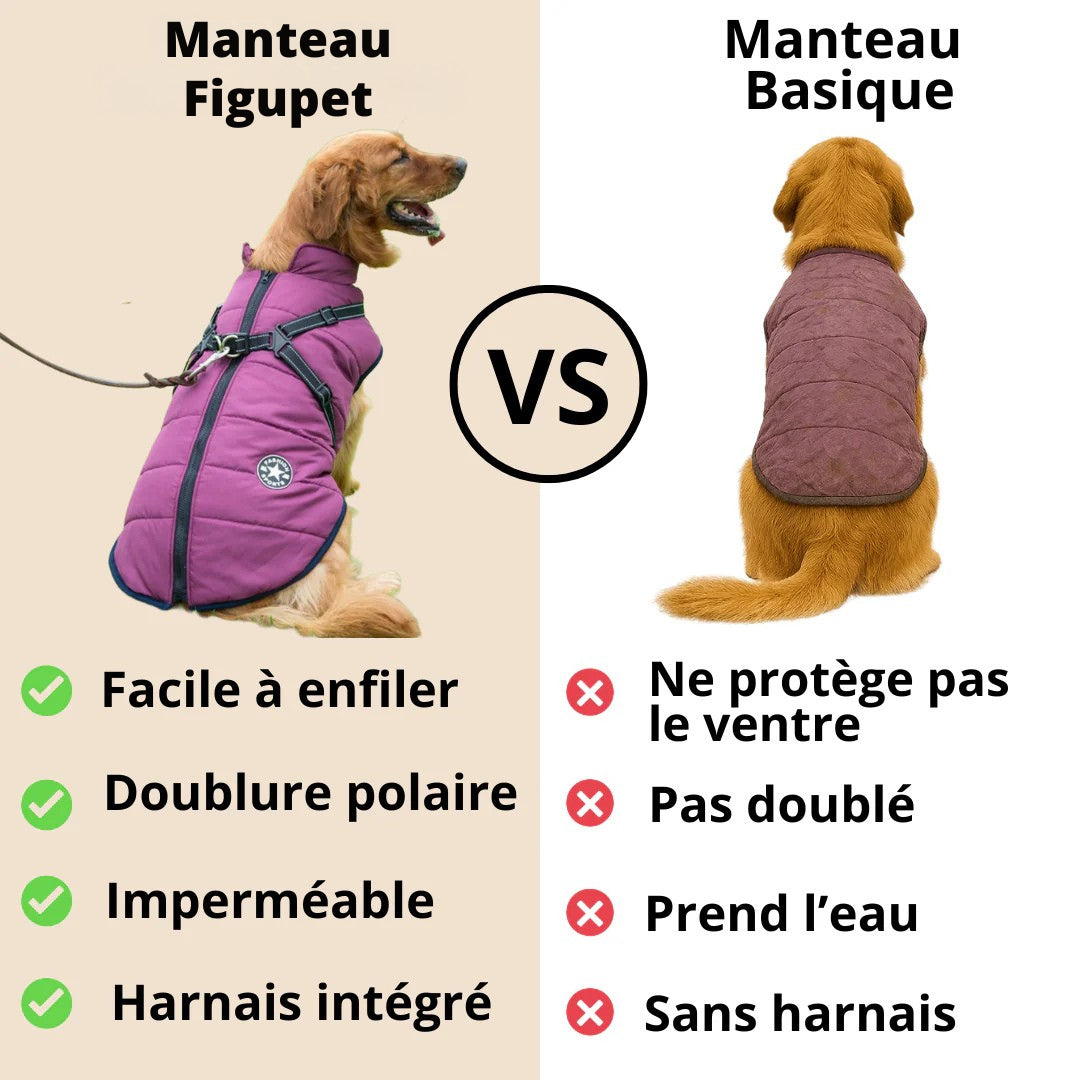 Oui, ce manteau est conçu avec un matériau déperlant pour garder votre chien au sec lors des promenades sous la pluie ou dans la neige.